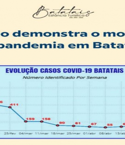 Pela quarta semana seguida o município de Batatais apresenta aumento no número de casos de covid-19, com 167 registros nessa semana, somados os pacientes até essa sexta-feira, 6 de maio